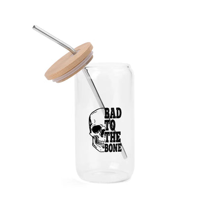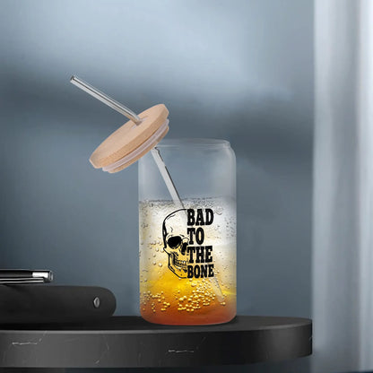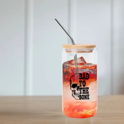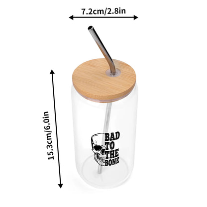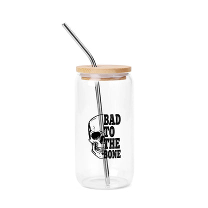 Bad To The Bone Bamboo Lid 16oz Glass Cups with Straw