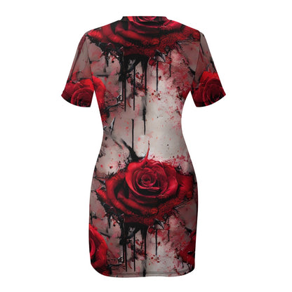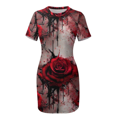 Bloody Gothic Rose Crew Neck Short Sleeve Dress