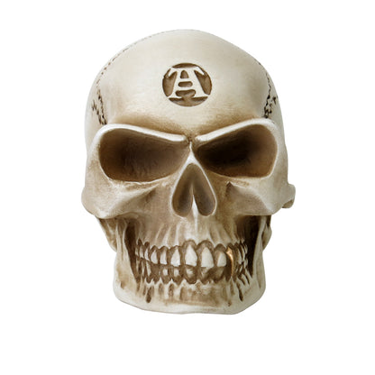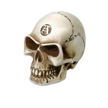 Desk top bone resin version of the classic Alchemist skull. This skull can also be used as a car gear knob.