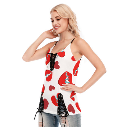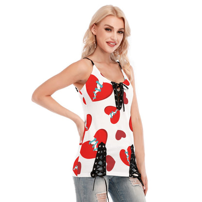 Broken Heart V-neck Eyelet Lace-up Cami Top