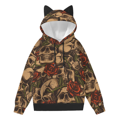 Bronze Skulls And Roses Hoodie With Cat Ears