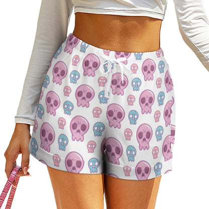 Cute Little Skulls High Waist Loose Elastic Waist Shorts