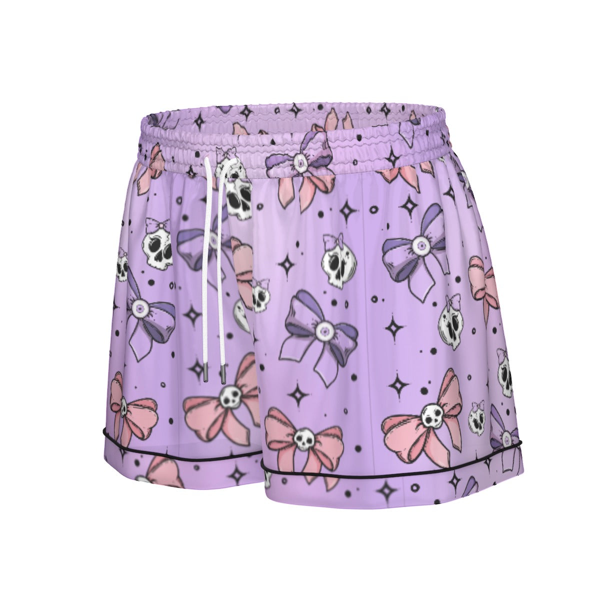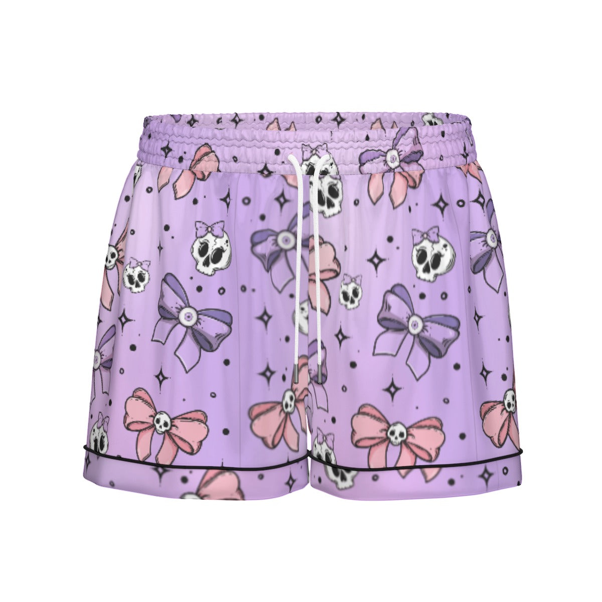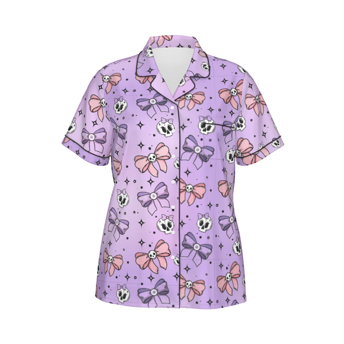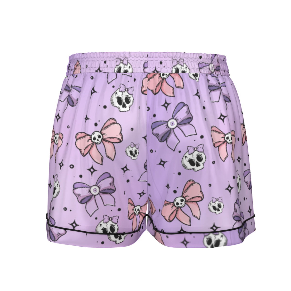 Cute Skull And Bow Imitation Silk Pajama Set With Short Sleeve
