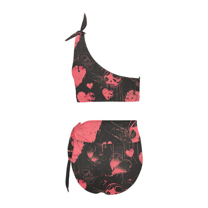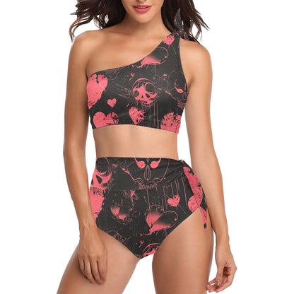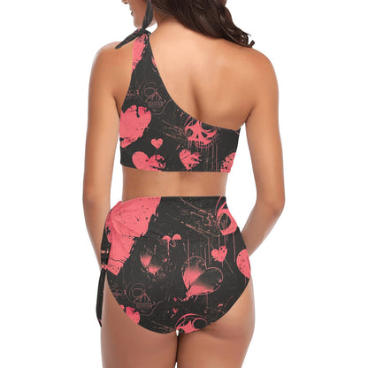 Faded Hearts High Waisted One Shoulder Bikini Set