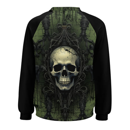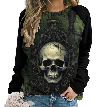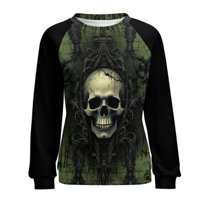 Gothic Green And Black Skull Raglan Round Neck Sweater