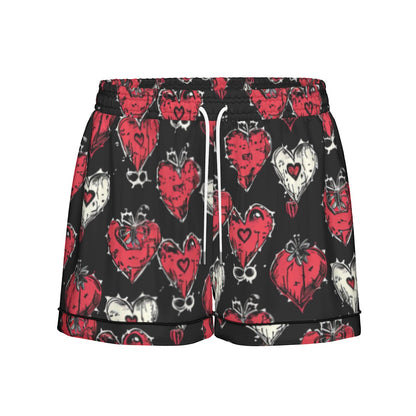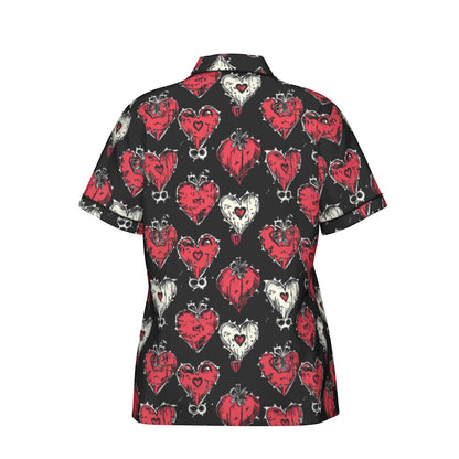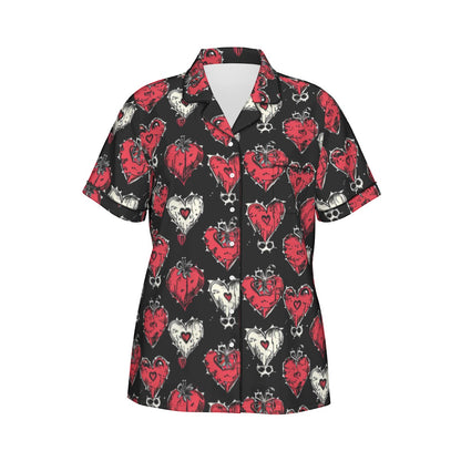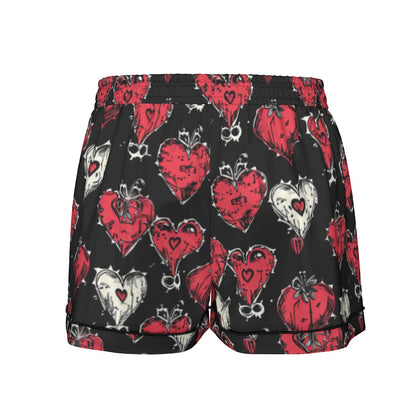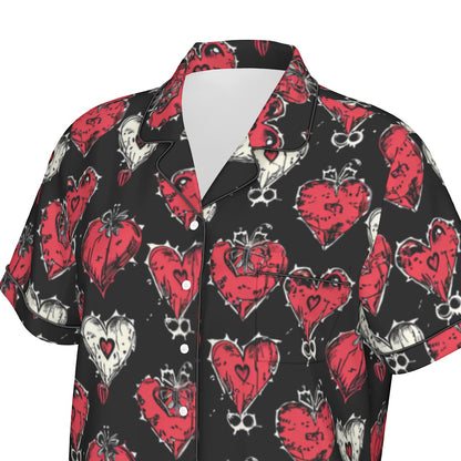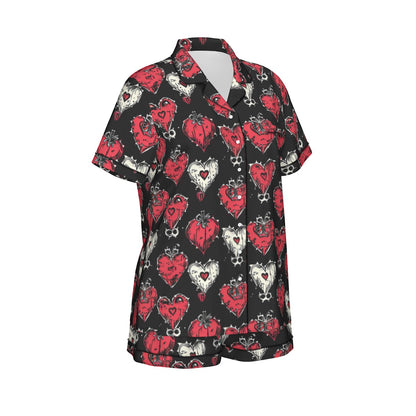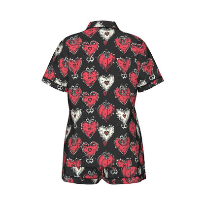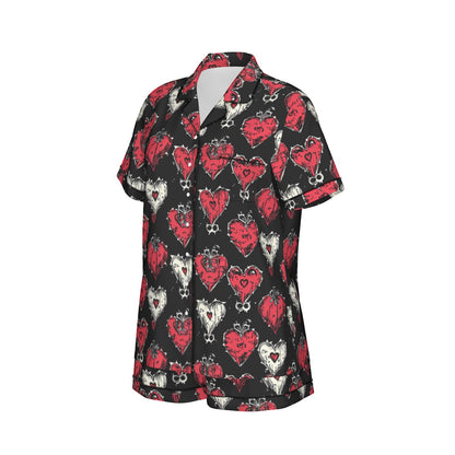 Gothic Hearts Women's Imitation Silk Pajama Set With Short Sleeve