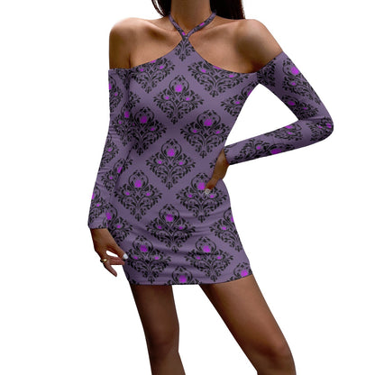 Gothic Purple Design Halter Lace-up Dress