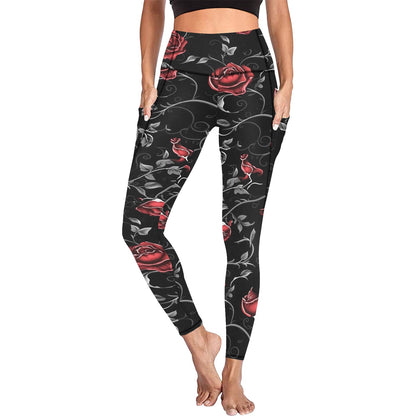 Gothic Roses And Vines Leggings with Pockets