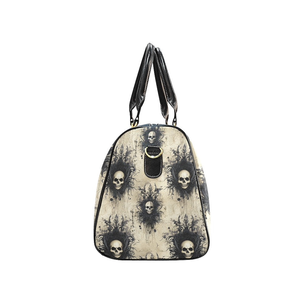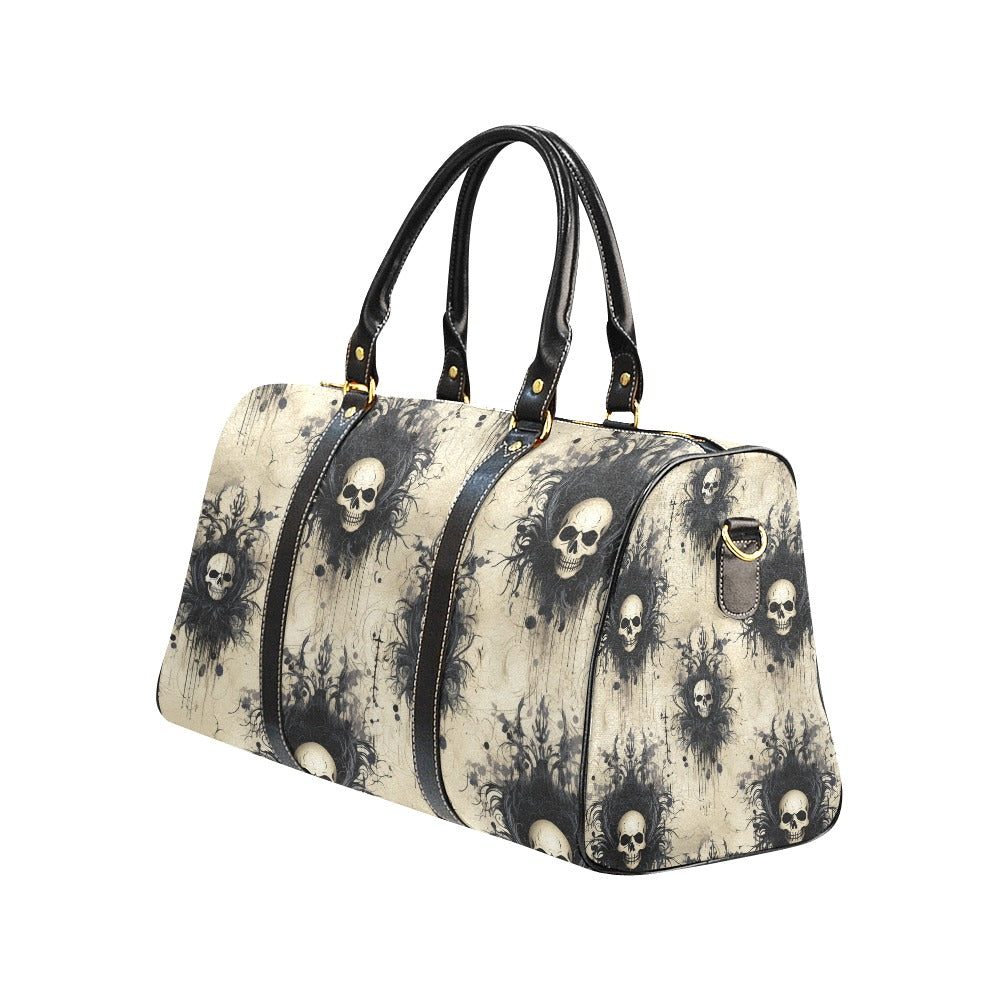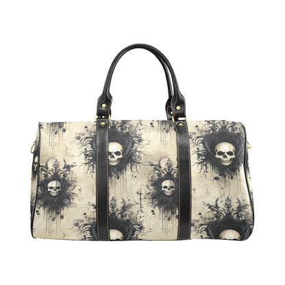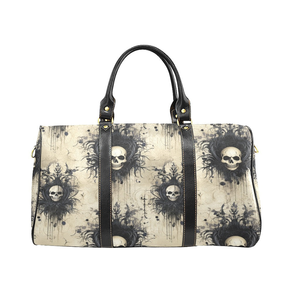 This travel bag features a gothic skull design