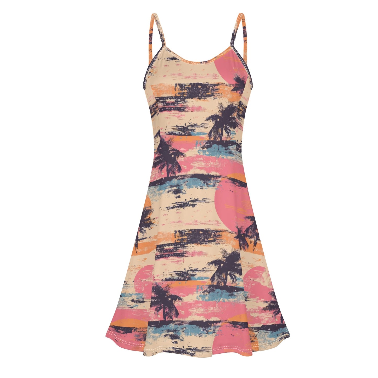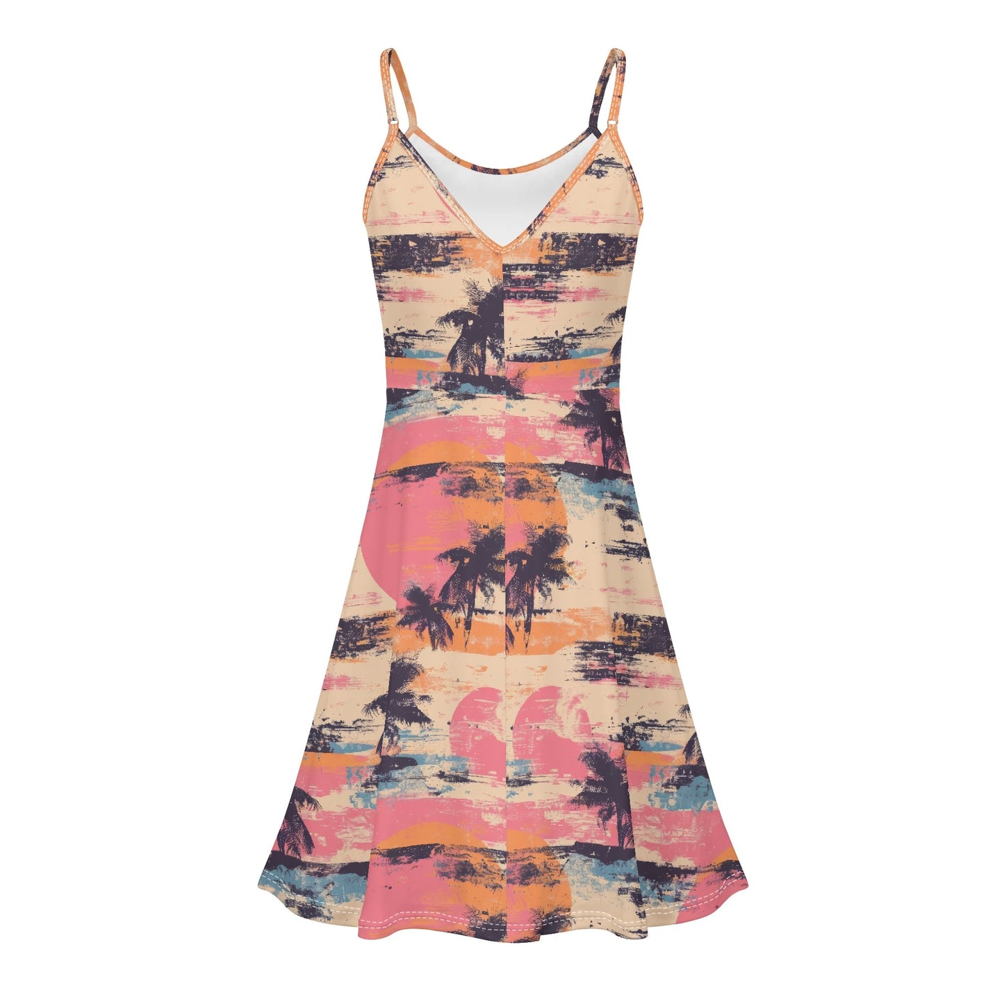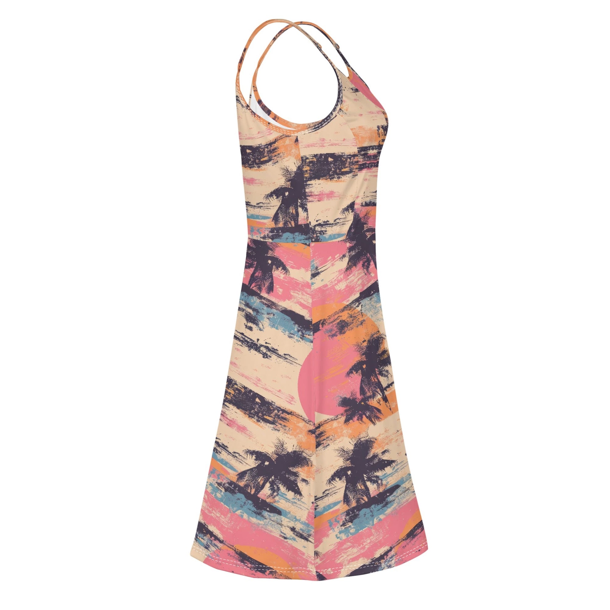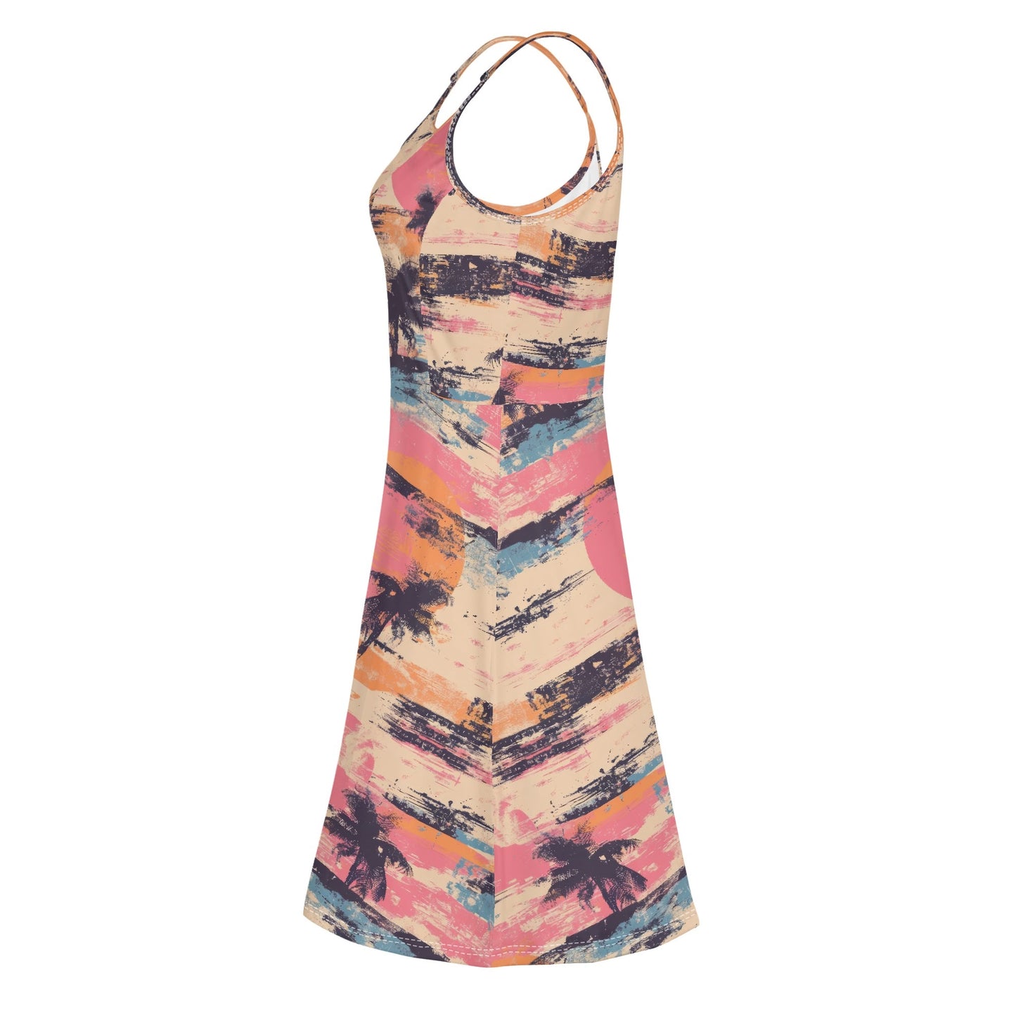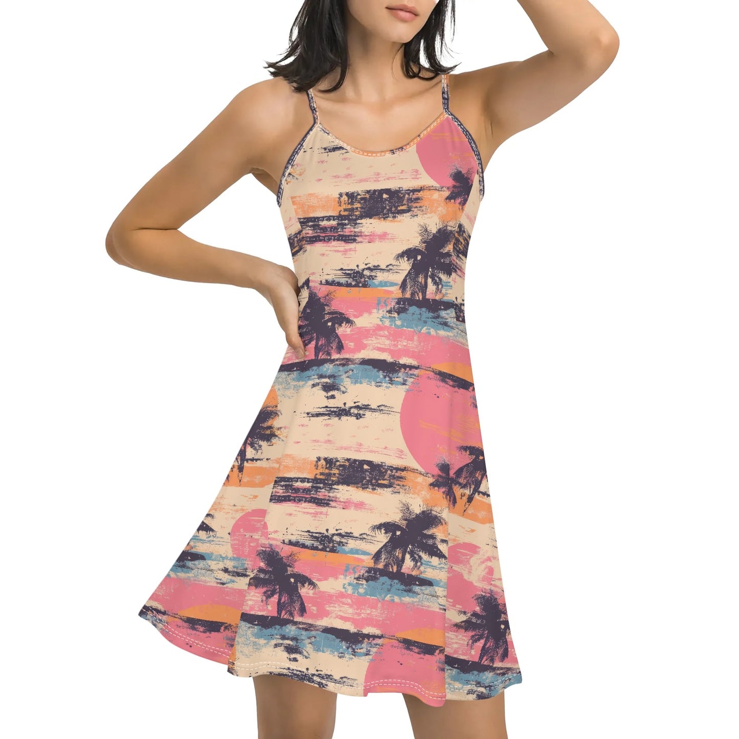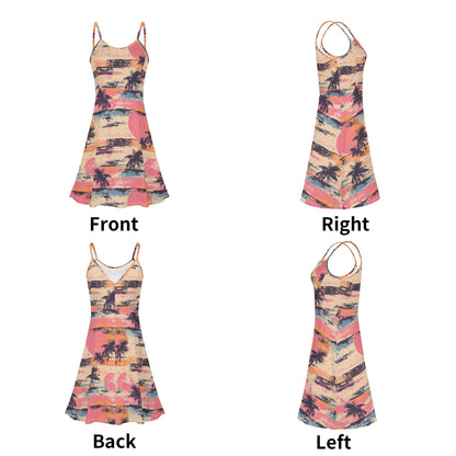 Grunge Sunset Lounge Sleeveless Adjustable Spaghetti Strap Short Dress