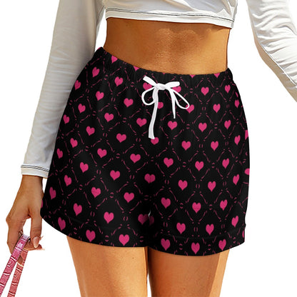 Little Pink Hearts High Waist Loose Elastic Waist Shorts