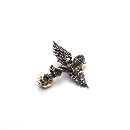 A 3D sculpted pewter pin badge with two clutch pins.