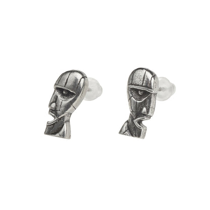 From Storm Thorgerson's "Division Bell" cover design; the giant heads were constructed and erected near Ely for the photo shoot that was to become the 1994 album art.A pair of 3D sculpted heads from the Division Bell album cover; English pewter stud earrings.