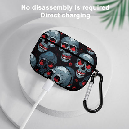 This airpod pro headphone case features red eyed skulls design