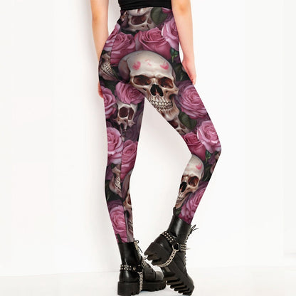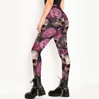 These leggings features a skull and pink rose pattern