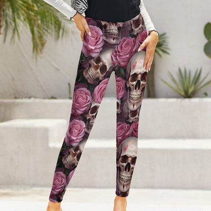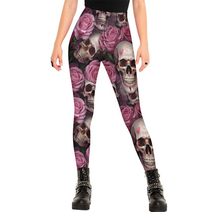 Skulls And Pink Roses Leggings