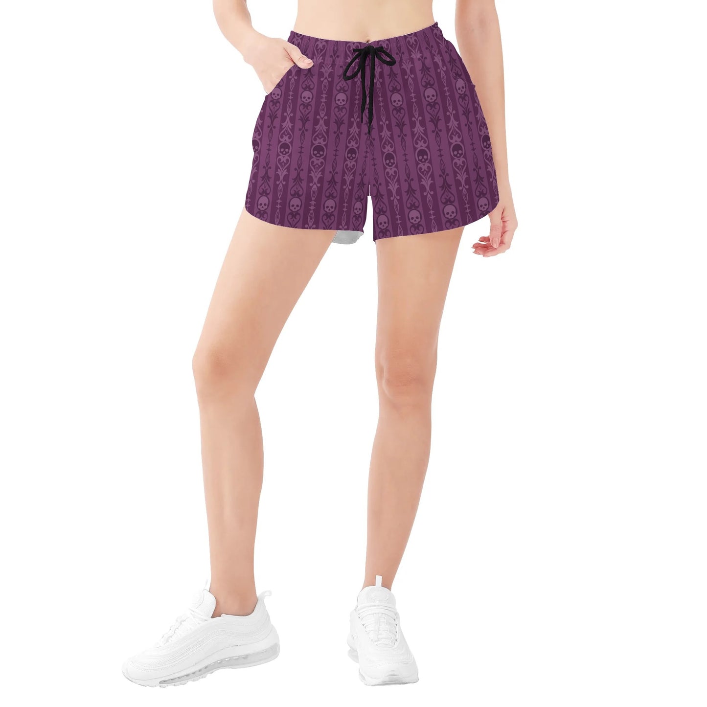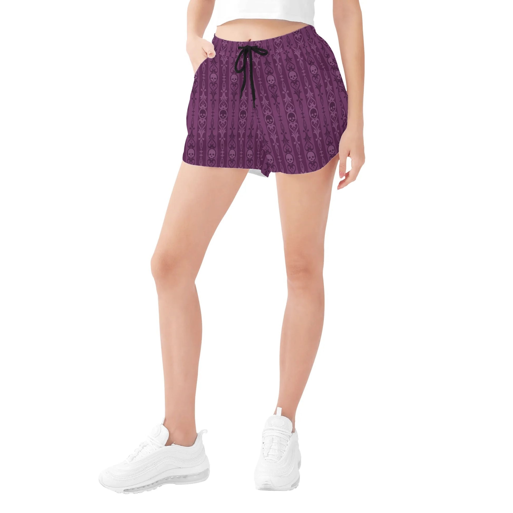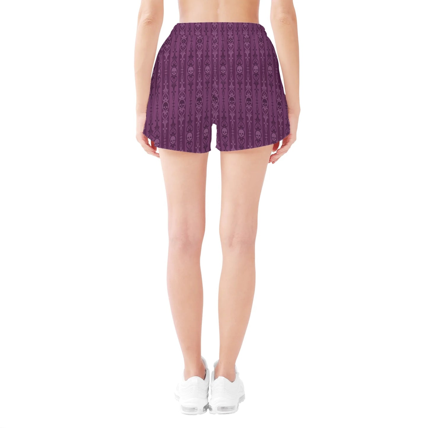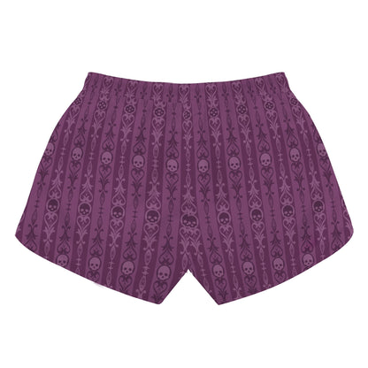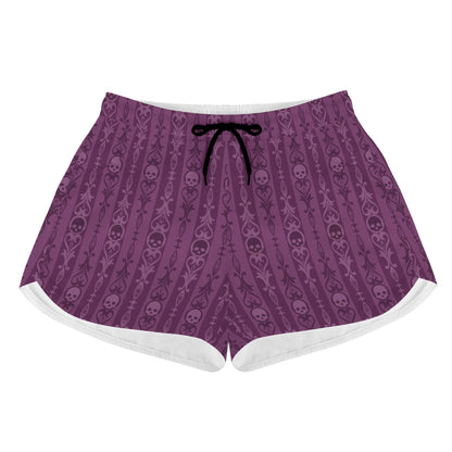 Skulls And Symbols Purple Womens Casual Beach Shorts