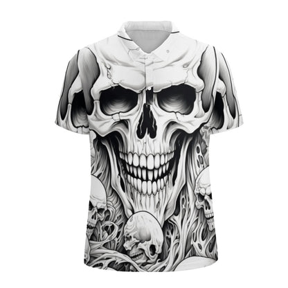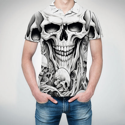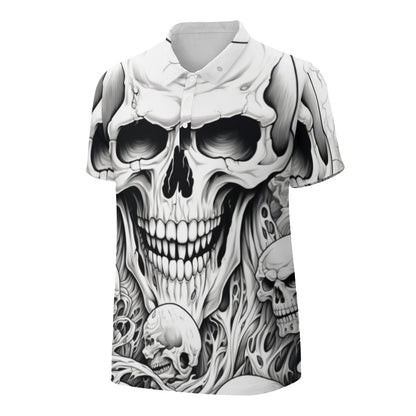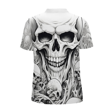 This polo shirt features a skull design