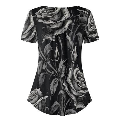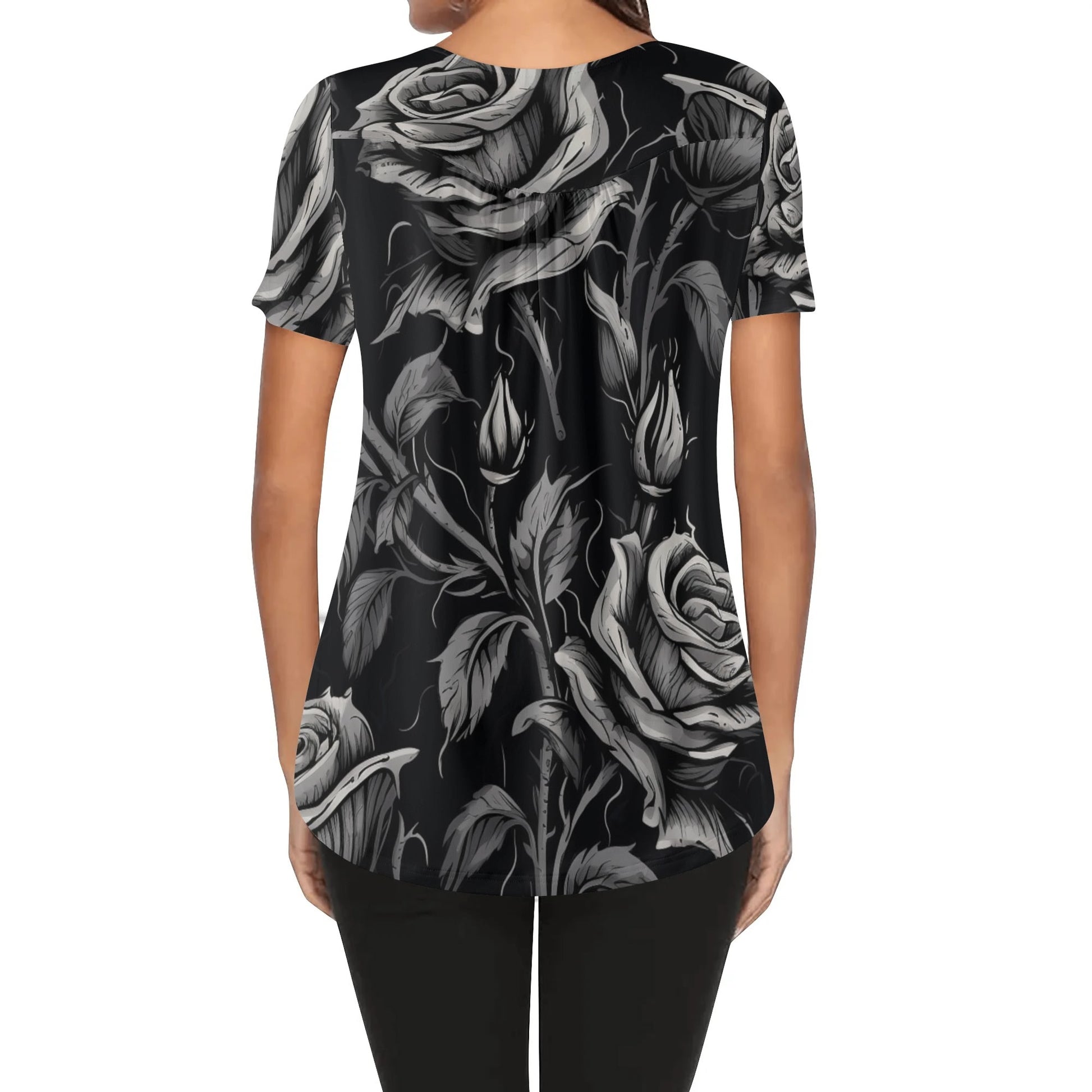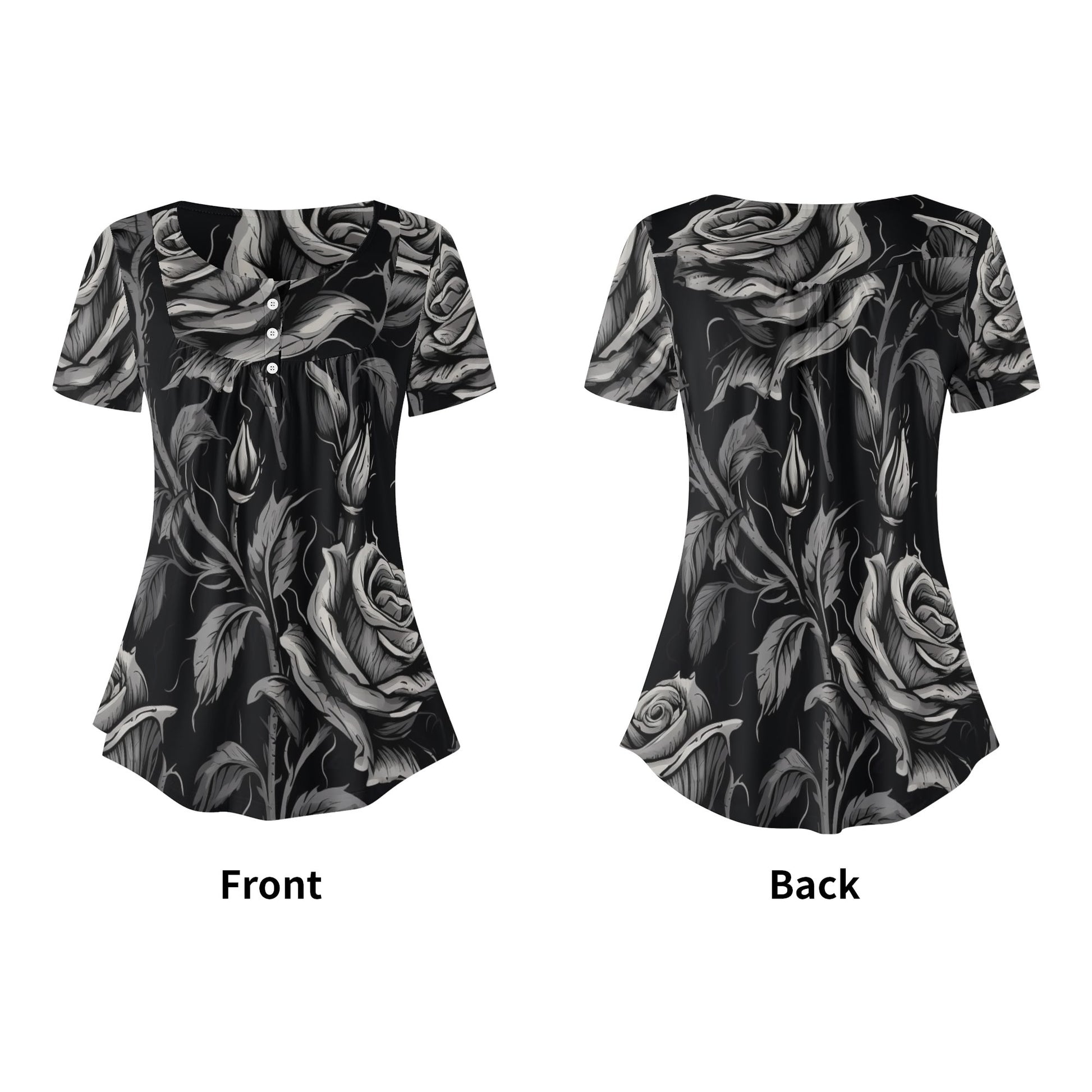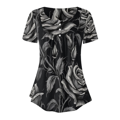 Withering Roses Scoop Neck Short sleeve Loose Blouse
